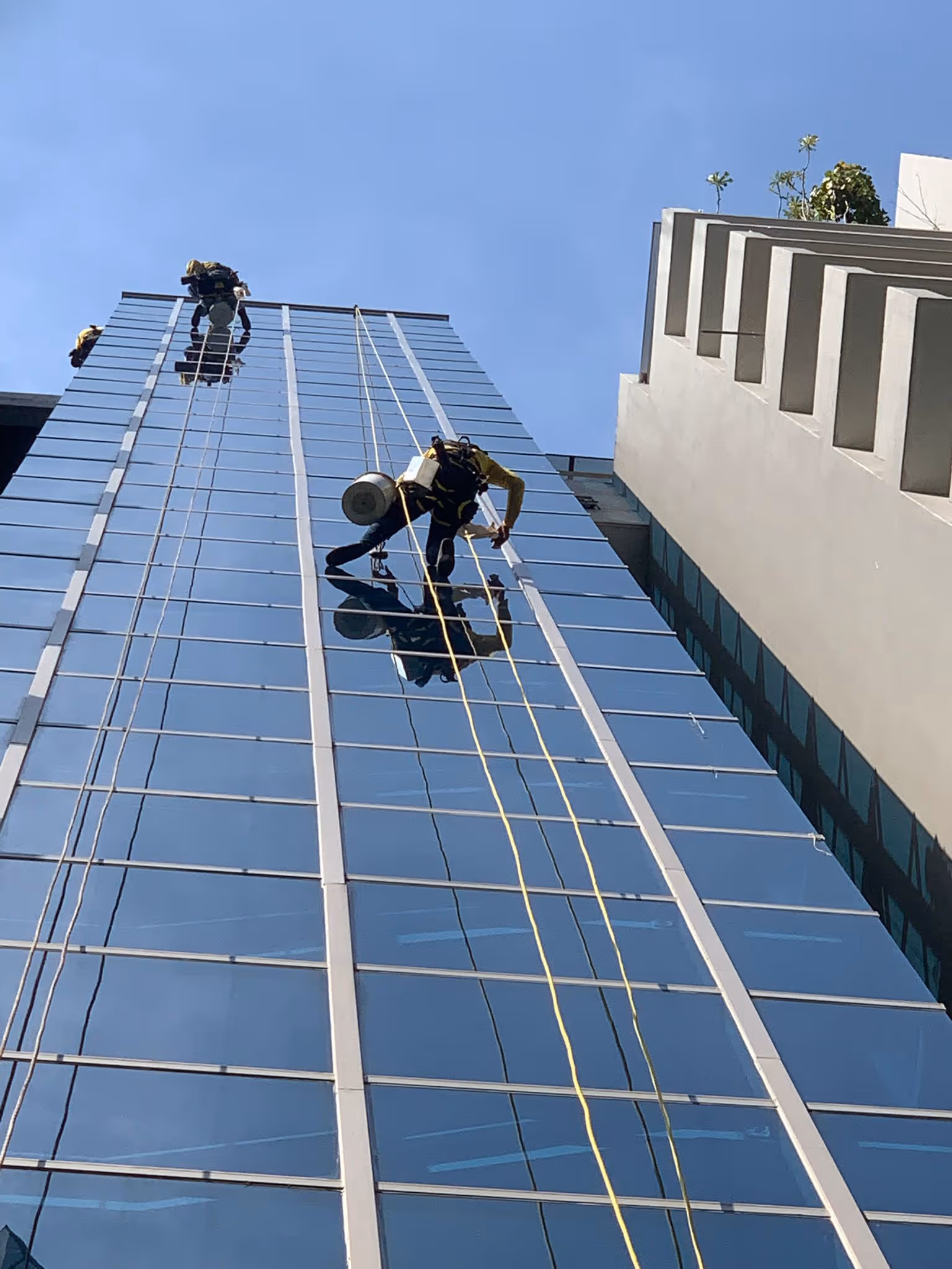 Our facade cleaning services are carried out by certified rope access technicians (commonly known as “spidermen”), trained and licensed to perform high-rise works safely and efficiently. Using professional equipment and industry-approved techniques, our team removes dirt, stains, moss, pollutants, and weather damage from building exteriors — restoring a clean, polished appearance while preparing surfaces for repainting. Rope access cleaning allows us to reach even the most challenging areas without heavy scaffolding, reducing disruption and cost while maintaining strict safety standards.
